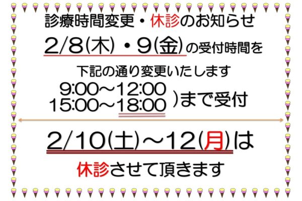 (9:00~12:00、15:00~18:00まで受付)○休診日
